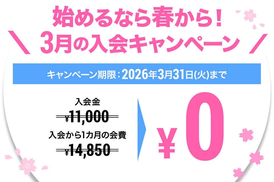 当日入会なら初期費用がぐーんとお得になるキャンペーン実施中!
